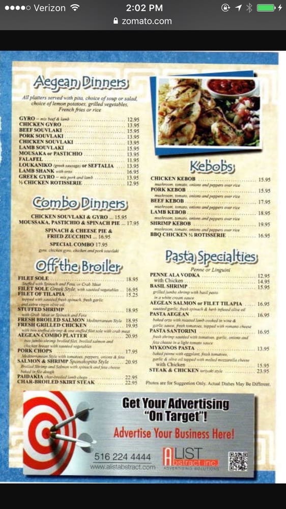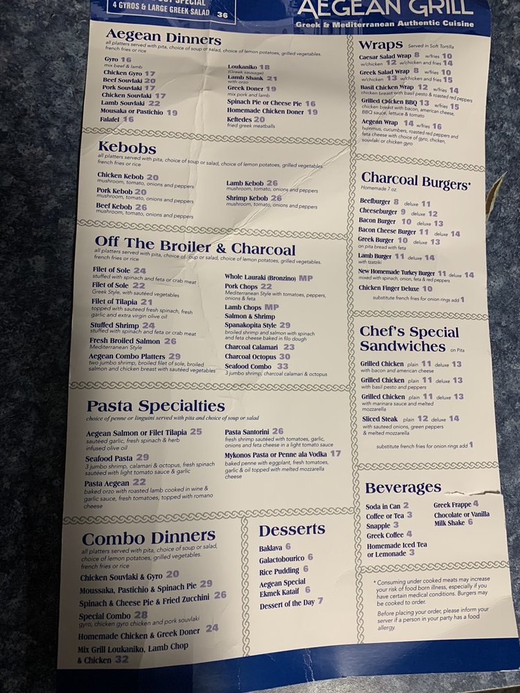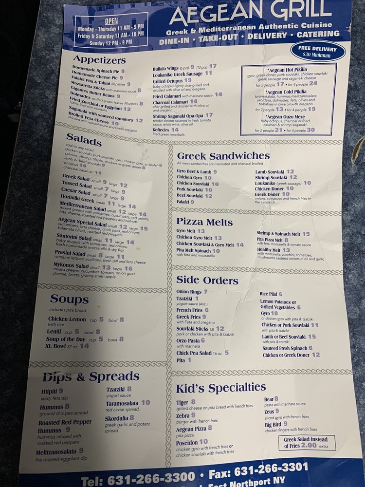 Located in East Northport, Aegean Grill is a casual Greek restaurant offering a variety of delicious dishes for lunch and dinner. Customers rave about the friendly staff, quick service, and authentic flavors. The menu includes traditional Greek options like Gyro dinners, Chicken souvlaki sandwiches, grilled calamari, lamb chops, and more. Vegetarians and vegans will also find plenty of options to enjoy. With outdoor seating, free Wi-Fi, and a cozy atmosphere, Aegean Grill is a gem for those looking for a great dining experience. Don't miss out on their lemon soup, Greek salads, and filo custard pastries. Whether dining in, taking out, or ordering delivery, Aegean Grill ensures a satisfying meal every time. So why not stop by and enjoy a taste of Greece right in your neighborhood.